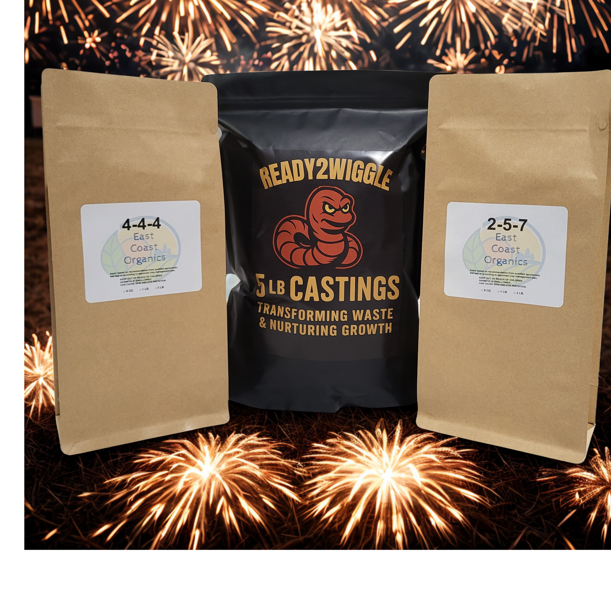 ● Ready 2 Wiggle Premium Worm Castings (5 lb) – hand-sifted, microbe-rich castings that improve soil structure, nutrient availability, and root development.